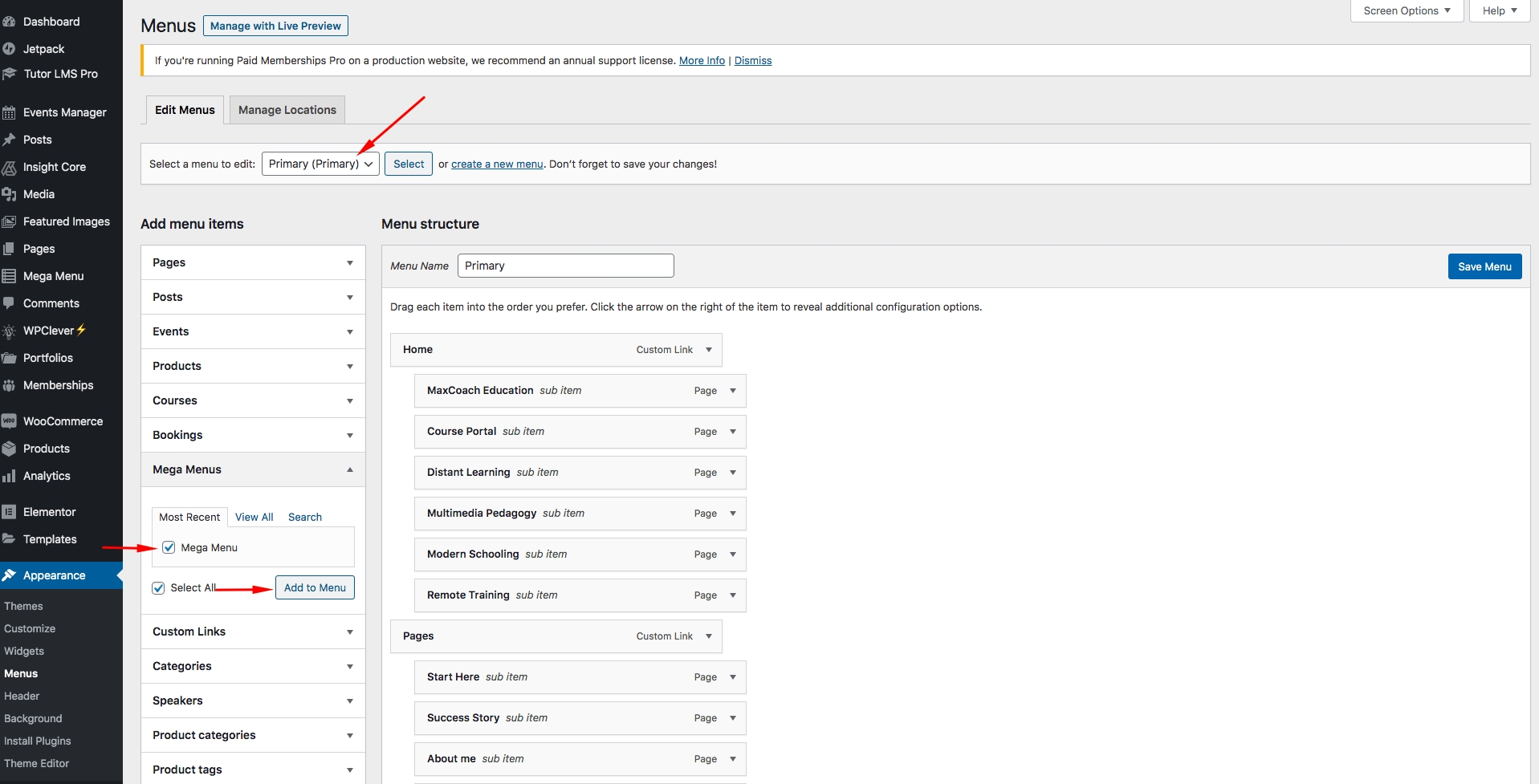 Step 5: Add the Mega Menu you've just created into your chosen menu.