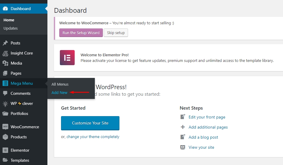 Step 1: Navigate to Mega Menu from the admin dashboard >> Add New Menu